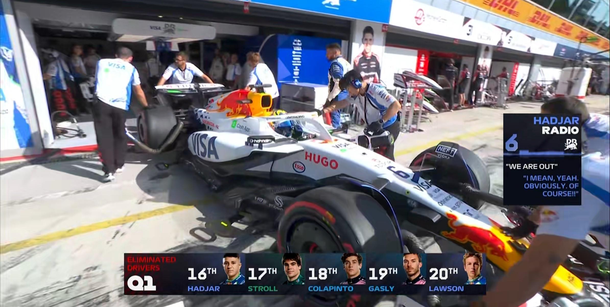Q1被淘汰车手:哈贾尔、斯特罗尔、科拉平托、加斯利、劳森